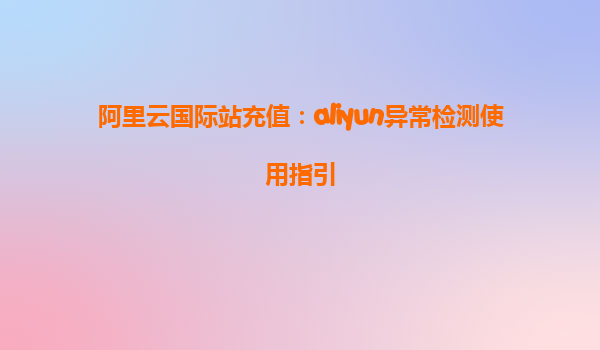 阿里云国际站代理商:aliyun异常检测怎么使用
