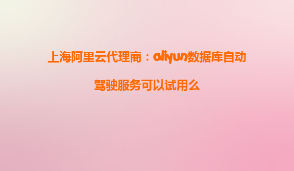 上海阿里云代理商:aliyun数据库自动驾驶服务可以试用么