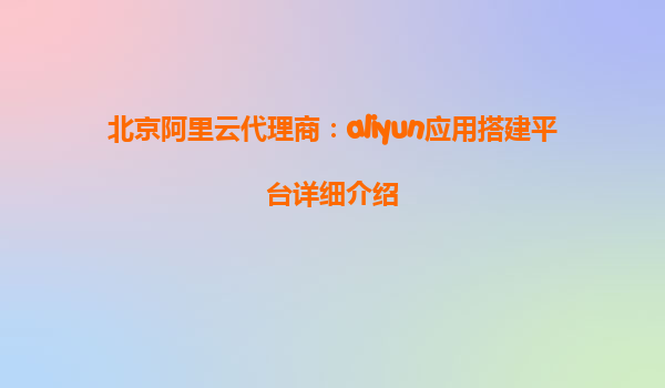 上海阿里云代理商:aliyun应用搭建平台商业化