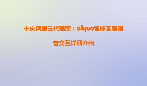 重庆阿里云代理商:aliyun智能客服语音交互详细介绍