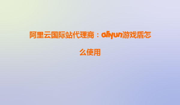 阿里云国际站代理商:aliyun游戏盾