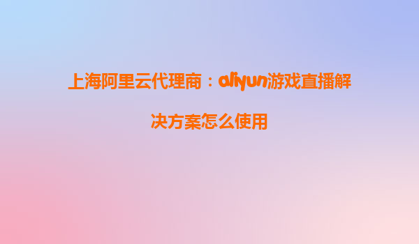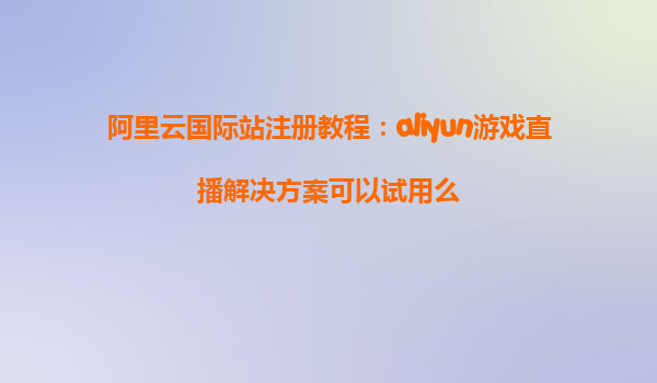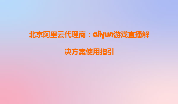 广州阿里云代理商:aliyun游戏直播解决方案商业化