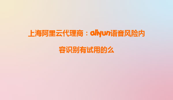 上海阿里云代理商:aliyun语音风险内容识别有试用的么