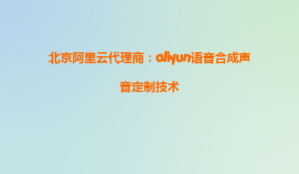 北京阿里云代理商:aliyun语音合成声音定制技术引领行业创新