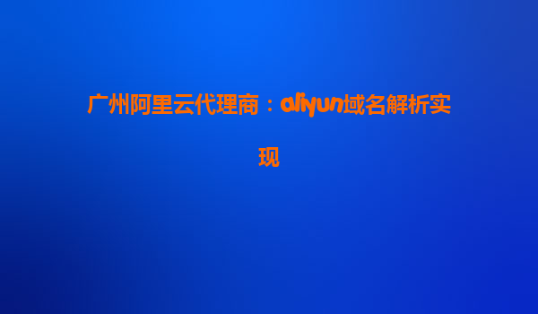 广州阿里云代理商:阿里云域名解析实现高效稳定网络服务