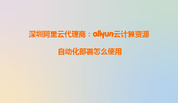 阿里云国际站充值:aliyun云计算资源自动化部署实现