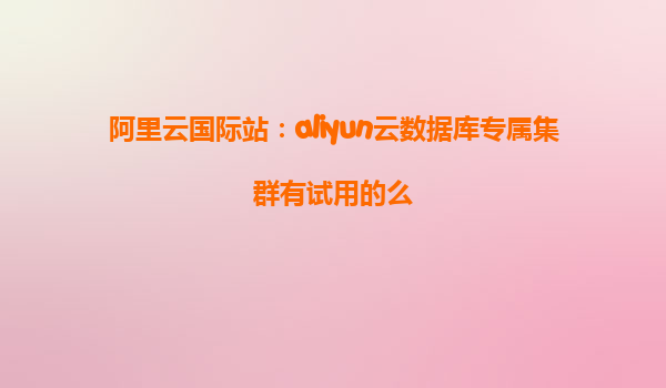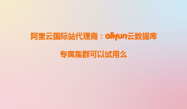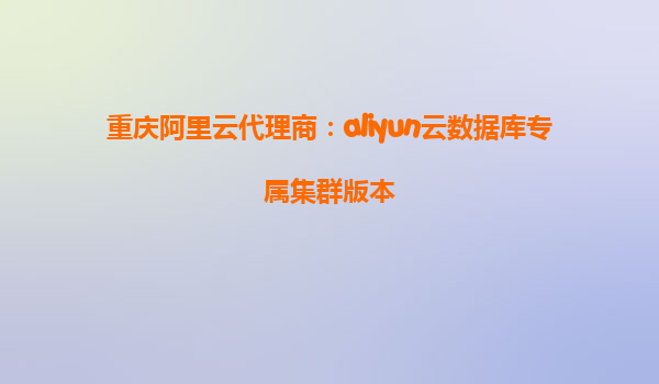广州阿里云代理商:aliyun云数据库专属集群实现