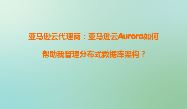 亚马逊云代理商:亚马逊云Aurora如何帮助我管理分布式数据库架构?