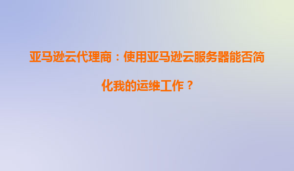 亚马逊云代理商:使用亚马逊云服务器能否简化我的运维工作?