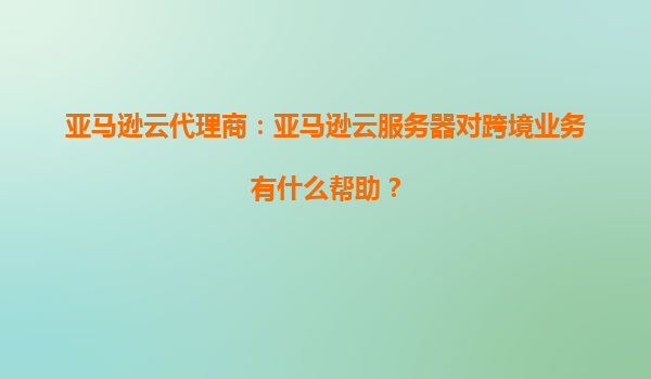 亚马逊云代理商:亚马逊云服务器对跨境业务有什么帮助?