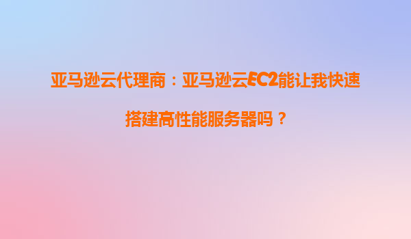 亚马逊云代理商:亚马逊云EC2能让我快速搭建高性能服务器吗?