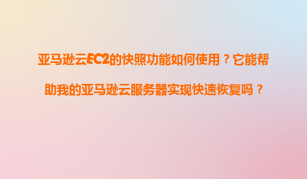 亚马逊云EC2的快照功能如何使用?它能帮助我的亚马逊云服务器实现快速恢复吗?