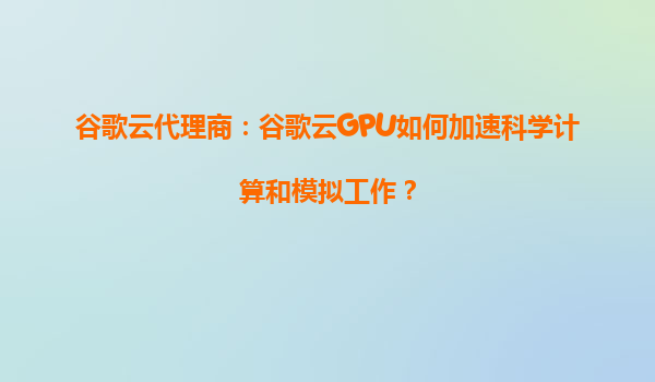 谷歌云代理商:谷歌云GPU如何加速科学计算和模拟工作?