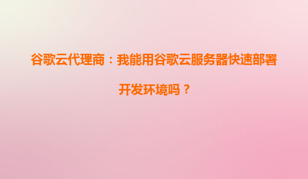 谷歌云代理商:我能用谷歌云服务器快速部署开发环境吗?