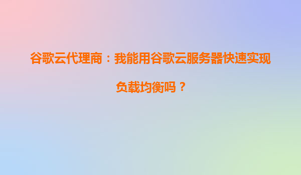 谷歌云代理商:我能用谷歌云服务器快速实现负载均衡吗?