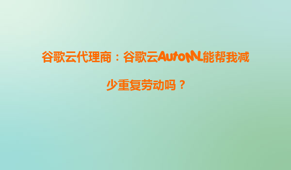 谷歌云代理商:我能否用谷歌云AutoML提升企业决策能力?