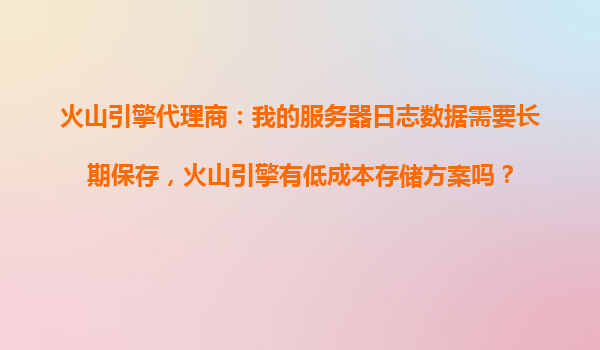 火山引擎:企业日志数据长期存储的低成本解决方案