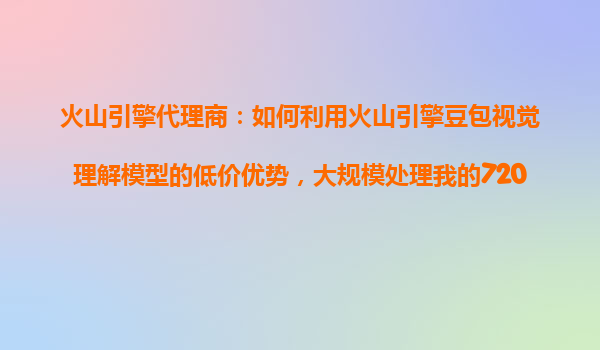 导读火山引擎代理商:如何利用火山引擎豆包视觉理解模型的低价优势,大规模处理我的720P图片数据?