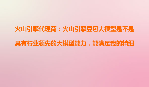 火山引擎代理商:火山引擎豆包大模型是不是具有行业领先的大模型能力,能满足我的精细化业务需求?