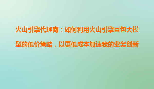 火山引擎代理商:如何利用火山引擎豆包大模型的低价策略,以更低成本加速业务创新?