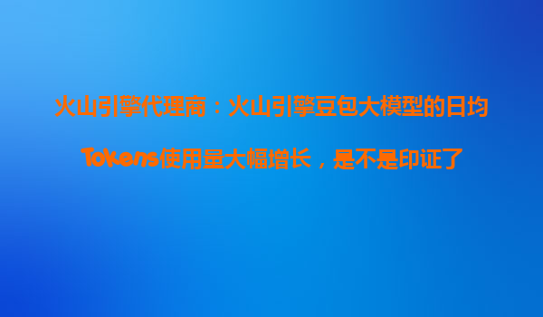 火山引擎代理商:火山引擎豆包大模型的日均Tokens使用量大幅增长,是不是印证了AI应用元年的到来?