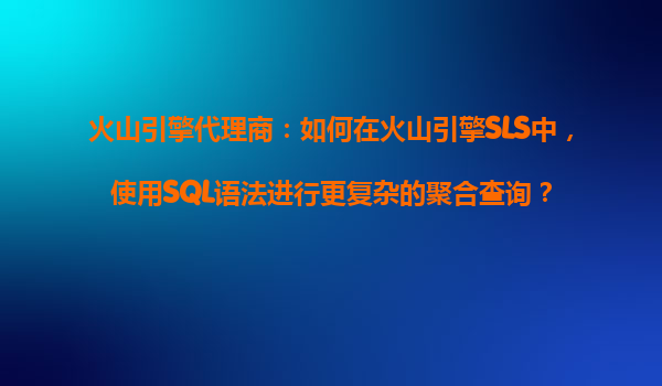 火山引擎代理商:如何在火山引擎SLS中,使用SQL语法进行更复杂的聚合查询?