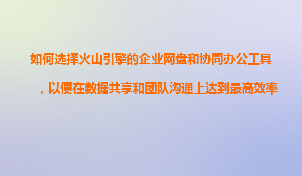 如何选择火山引擎的企业网盘和协同办公工具,以便在数据共享和团队沟通上达到最高效率?