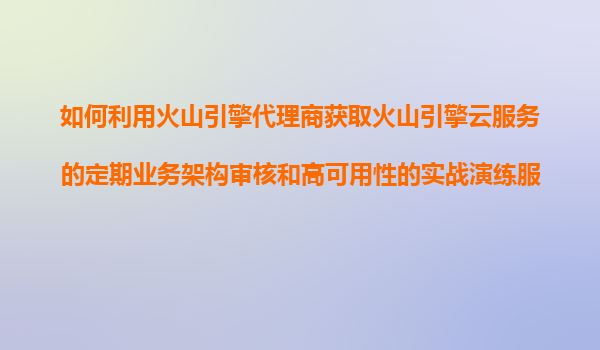 如何利用火山引擎代理商获取火山引擎云服务的定期业务架构审核和高可用性的实战演练服务?