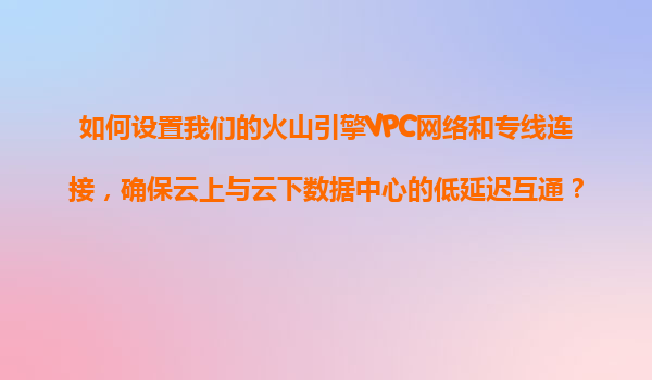 如何设置我们的火山引擎VPC网络和专线连接,确保云上与云下数据中心的低延迟互通?
