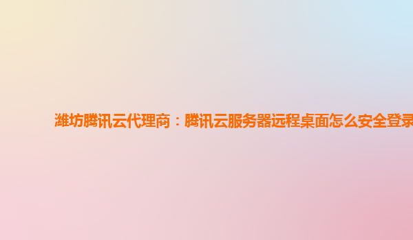 潍坊腾讯云代理商:腾讯云服务器远程桌面怎么安全登录