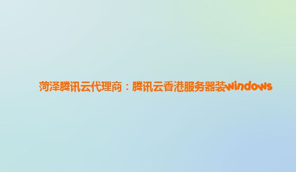 菏泽腾讯云代理商:腾讯云香港服务器装windows