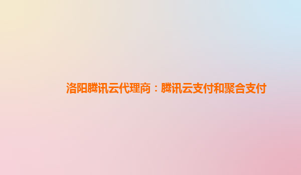 洛阳腾讯云代理商:腾讯云支付和聚合支付