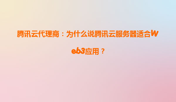 腾讯云代理商:为什么说腾讯云服务器适合Web3应用?