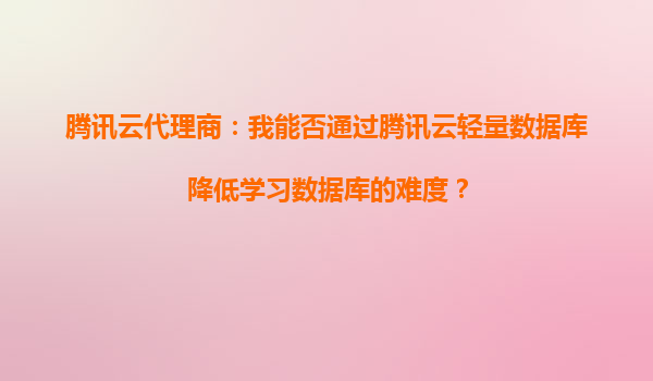腾讯云代理商:腾讯云轻量数据库能帮我实现快速的业务上线吗?