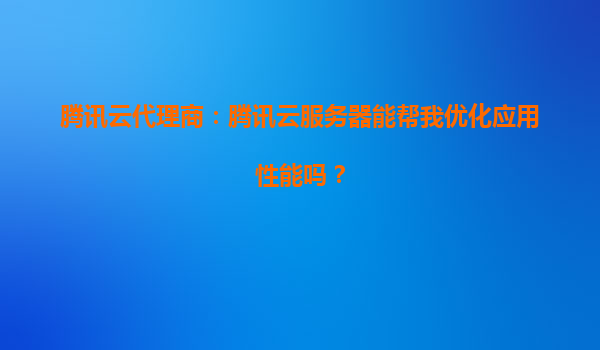腾讯云代理商:腾讯云服务器能帮我优化应用性能吗?