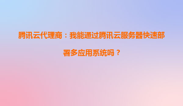 腾讯云代理商:我能通过腾讯云服务器快速部署多应用系统吗?