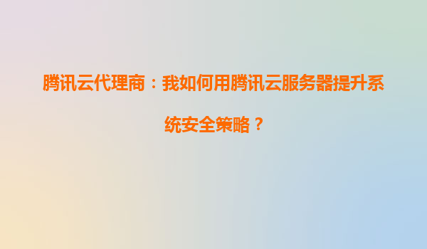 腾讯云代理商:我如何用腾讯云服务器提升系统安全策略?