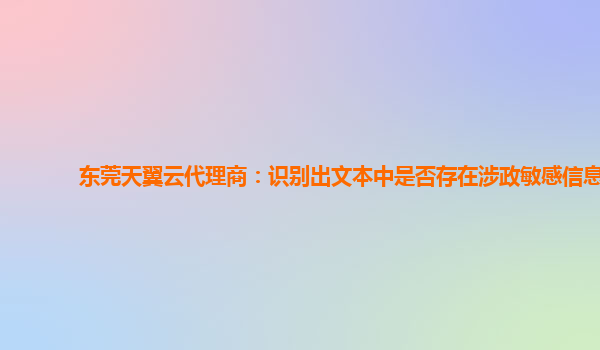 东莞天翼云代理商:识别出文本中是否存在涉政敏感信息