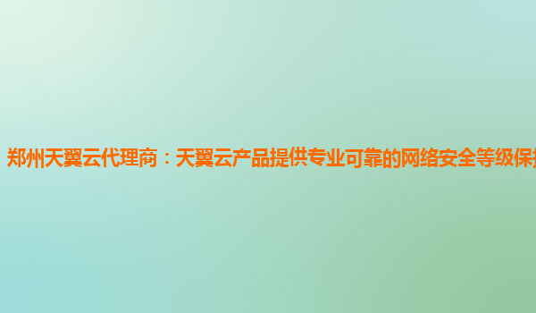 郑州天翼云代理商:天翼云产品提供专业可靠的网络安全等级保护测评服务