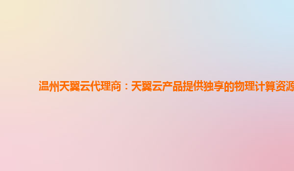 温州天翼云代理商:天翼云产品提供独享的物理计算资源