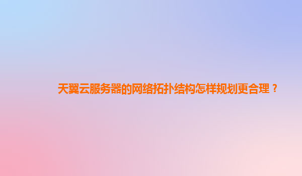 天翼云服务器的网络拓扑结构怎样规划更合理?