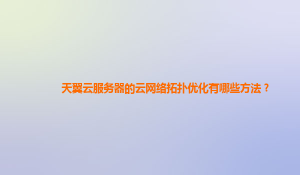 天翼云服务器的云网络拓扑优化有哪些方法?