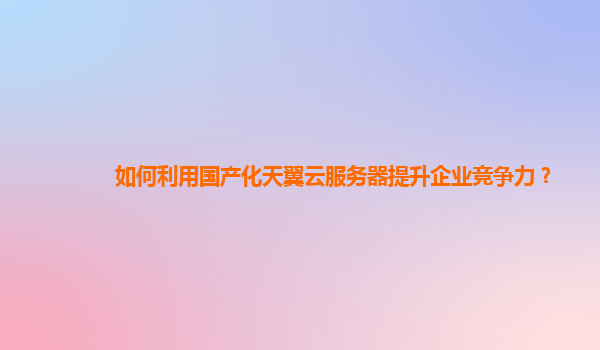 如何利用国产化天翼云服务器提升企业竞争力?