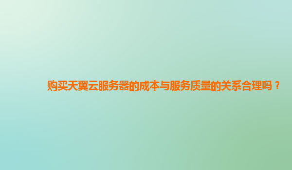 购买天翼云服务器的成本与服务质量的关系合理吗?