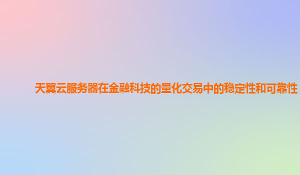 天翼云服务器在金融科技的量化交易中的稳定性和可靠性