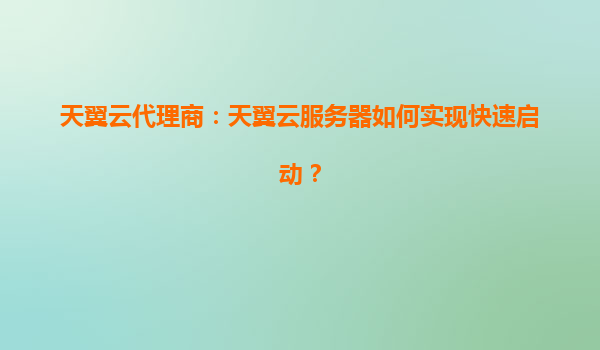 天翼云代理商指南:如何实现天翼云服务器极速启动