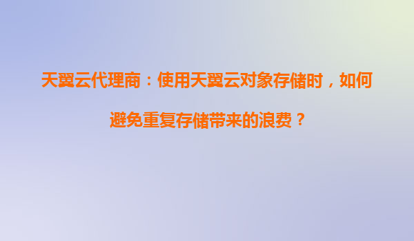 天翼云代理商指南:如何高效使用天翼云对象存储避免重复存储浪费