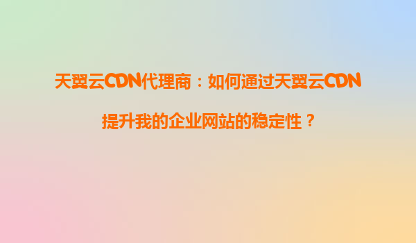 天翼云CDN代理商:如何通过天翼云CDN提升我的企业网站的稳定性?