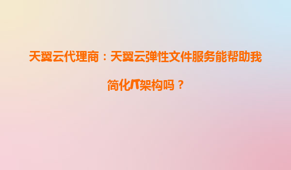 天翼云代理商:天翼云弹性文件服务能帮助我简化IT架构吗?