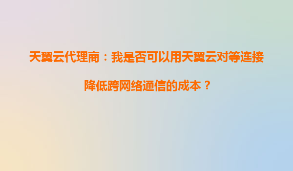 天翼云代理商:我是否可以用天翼云对等连接降低跨网络通信的成本?